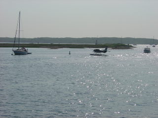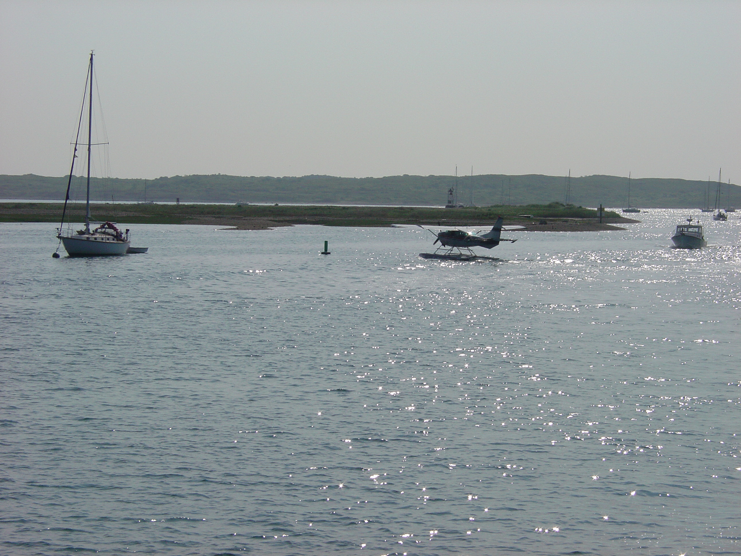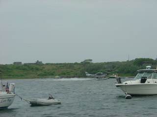 | Sea plane landing among boats at Cuttyhunk | Inner harbor at Cuttyhunk |