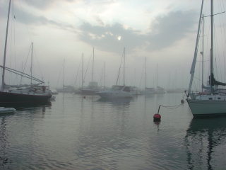 | The surf on July 5 on Vineyard Sound side of Cuttyhunk | Cuttyhunk morning fog |